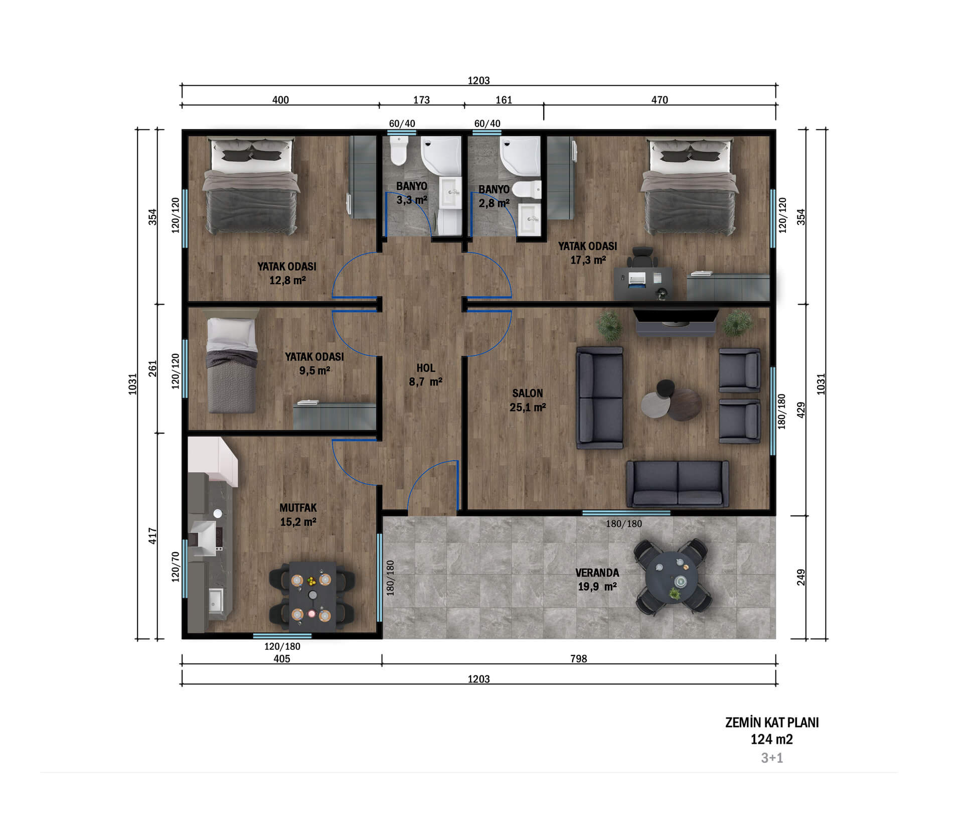 124 m²’lik bu çelik ev modeli, modern mimari çizgileriyle estetik bir görünüm sunarken aynı zamanda aile kullanımına uygun fonksiyonel bir iç yerleşim sağlar. Geniş pencereler ve ferah yaşam alanları, gün ışığından maksimum fayda almanızı sağlayarak hem sıcak hem de aydınlık bir atmosfer oluşturur. Zemin kattaki salon ve mutfak planlaması, ortak yaşam alanlarını bir arada tutarak aile içi iletişimi güçlendirir. Geniş veranda veya teras kullanım alanı ise doğayla iç içe keyifli vakit geçirebileceğiniz bir açık yaşam alanı sunar.
